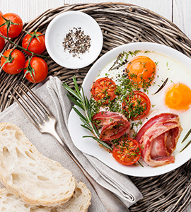 Bacon, rice, vegetables